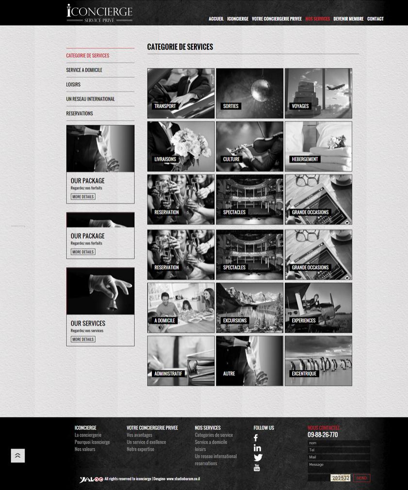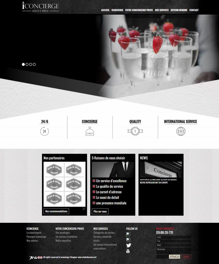 >> מצגת בדף הבית תמיד מכניסה לעולם של מסרים, רצינו שתקחו סיור קצרצר באיכות השירות של אייקונסיירג', ולכן החלטנו לפתוח את האתר במצגת תמונות גדולה ומרשימה, סרגל ניווט קל מאוד באתר ונראות חזקה ואסלוסיבית לאתר.