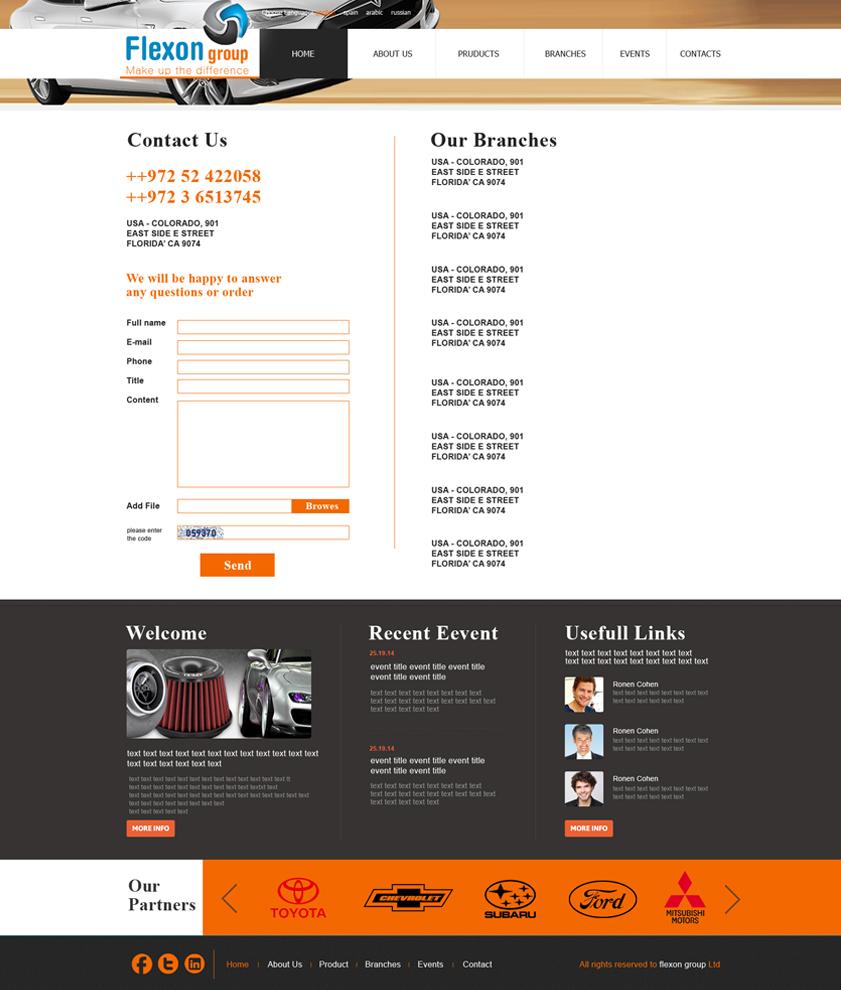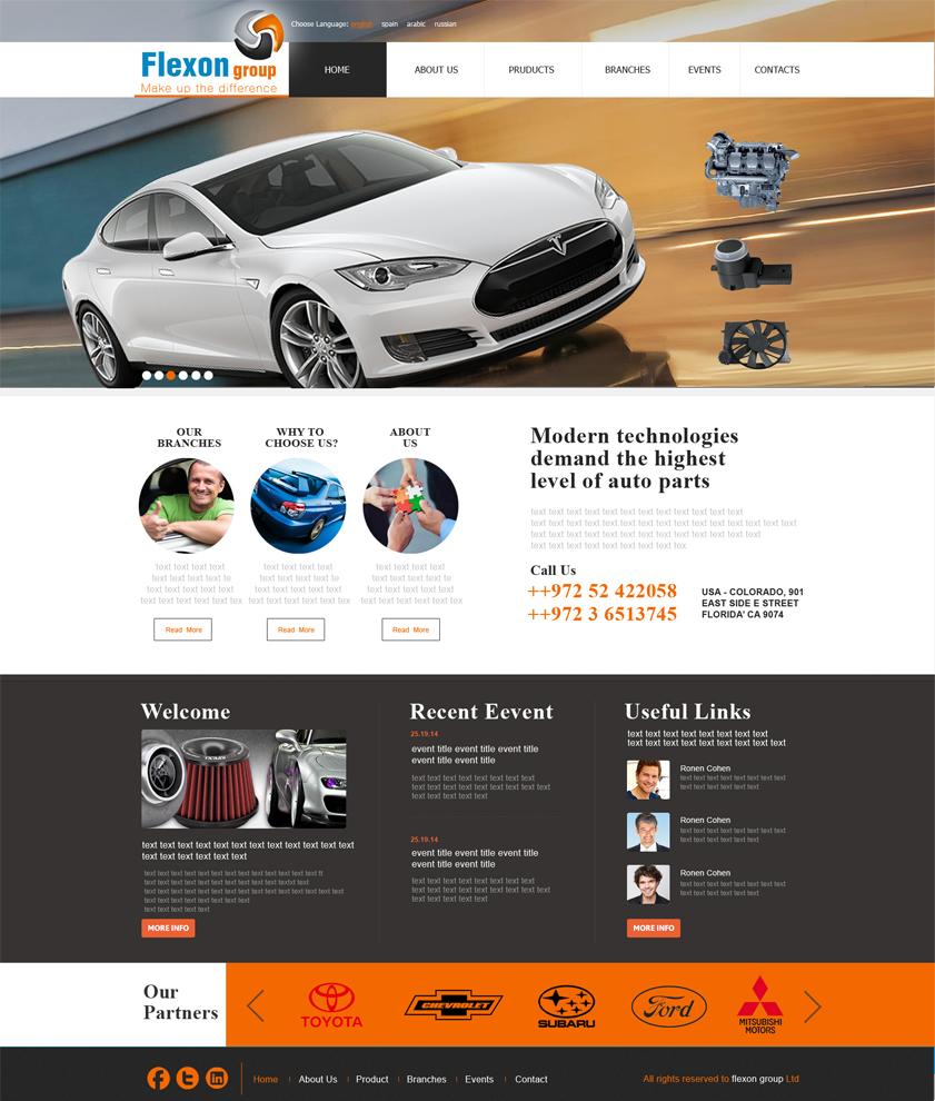 בדף הבית של האתר דאגנו לשים מצגת גדולה ומרשימה של רכבי יוקרה וחלקי חילוף שלהם. בנוסף, דאגנו לכלול מידע אודות החברה כבר בדף הבית, בדכי ליצור אמינות אצל הגולש. האתר כולו מעוצב בסטריפים, שלכל סטרים יש את הנוכחות והמקום שלו, כך שאם יש גלילה באתר, הגולש לא הולך לאיבוד